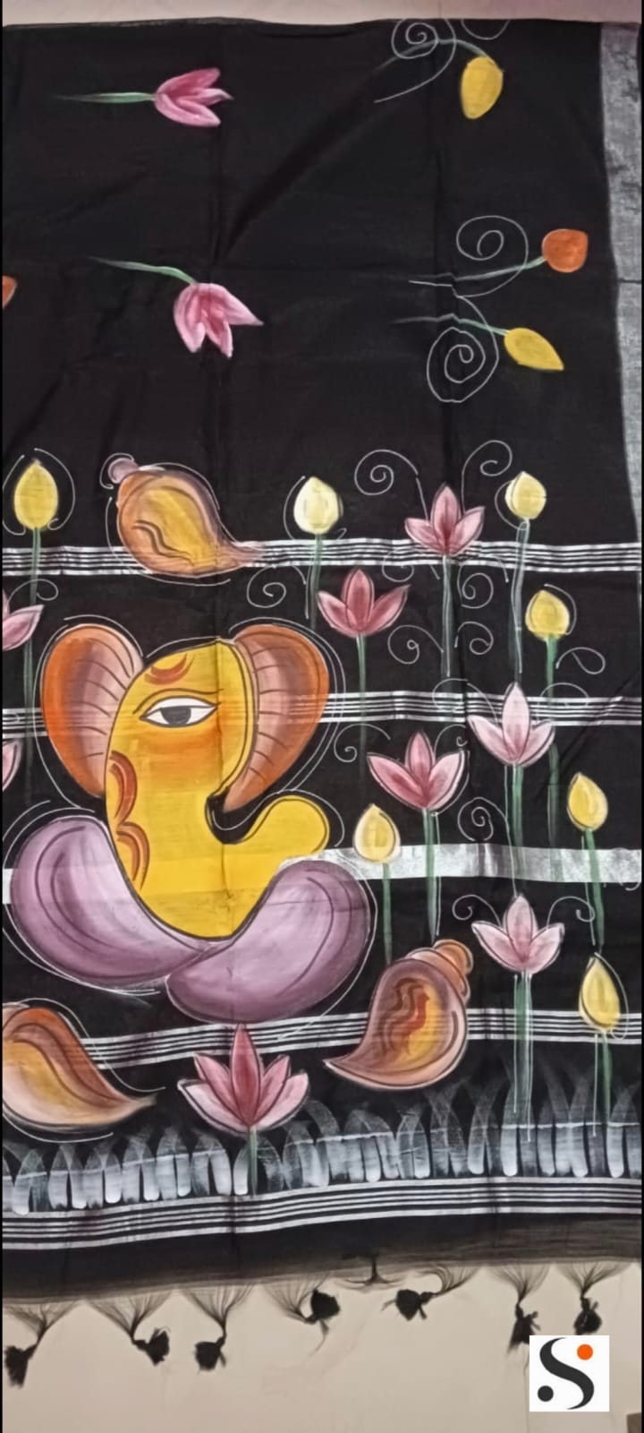 Design: Hand-printed Ganesh motif on a black base