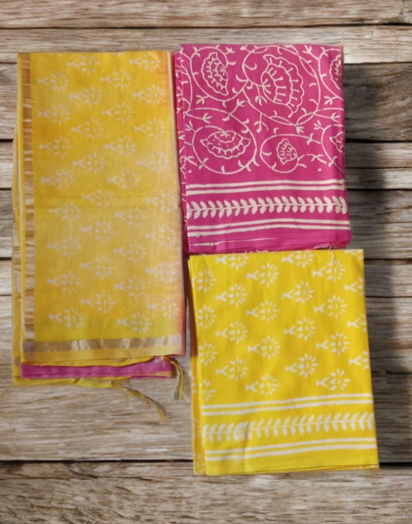 This suit set is not just attire – it’s a celebration of Indian craftsmanship, where Rajasthan’s earthy block prints meet Chanderi’s delicate weave. Wear it to exude grace, tradition, and effortless style in every season.